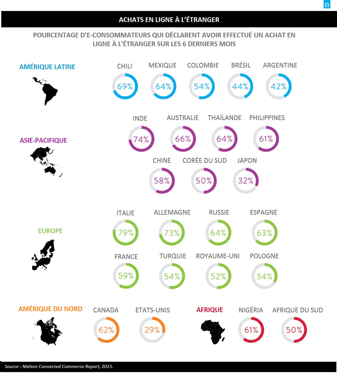 Les transactions inter-pays se multiplient aussi : 57% des e-consommateurs dans le monde ont effectué un achat à l’étranger.