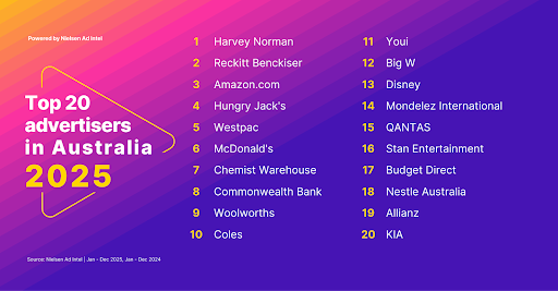 Australia’s Top 20 advertisers for 2025