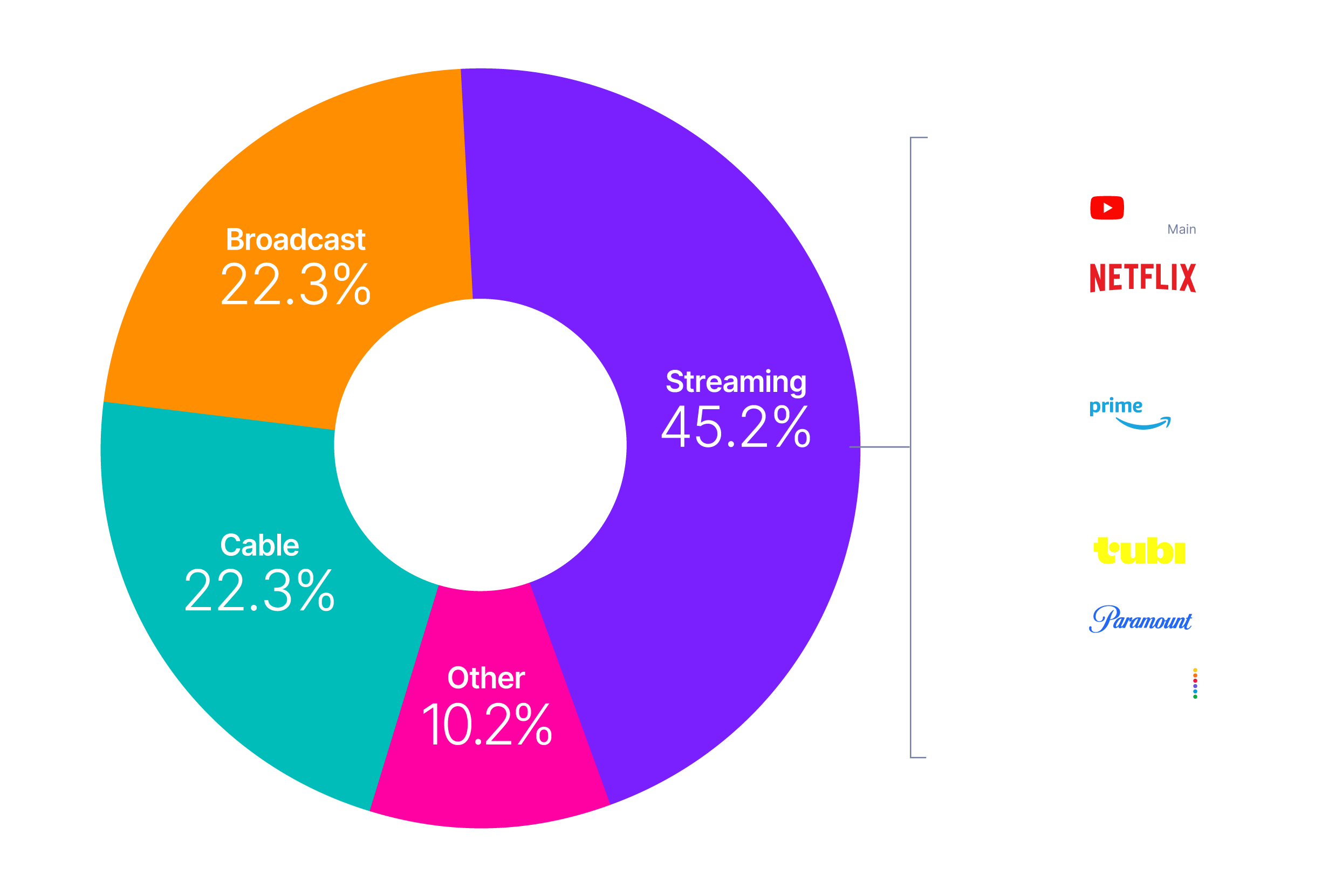 Source: Nielsen Streaming Content Ratings (Amazon Prime Video, AppleTV+, Disney+, Hulu, Max, Paramount+, Peacock and Netflix), Nielsen National TV Panel, U.S., viewing through television.